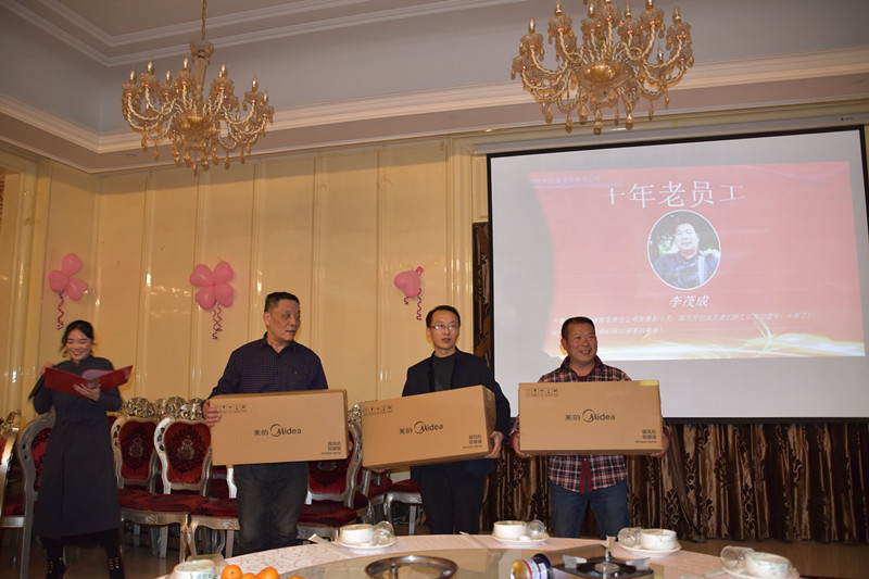 然后,公司領(lǐng)導頒發(fā)了十年以上老員工奉獻獎,他們是:工會主席尚宏廷、市場部部長李金玉、技術(shù)部部長王兵、項目經(jīng)理李茂成。正如主持人頒獎詞里說的那樣“十堰市水利水電有限責任公司能取得今天的成就離不開老員工持之以恒的堅守和默默無聞的付出,你們的名字將永遠銘刻在公司的功勞簿上!”
